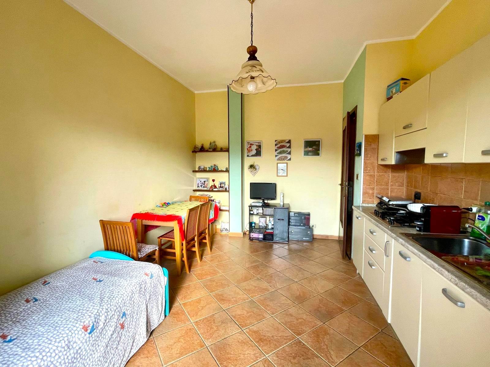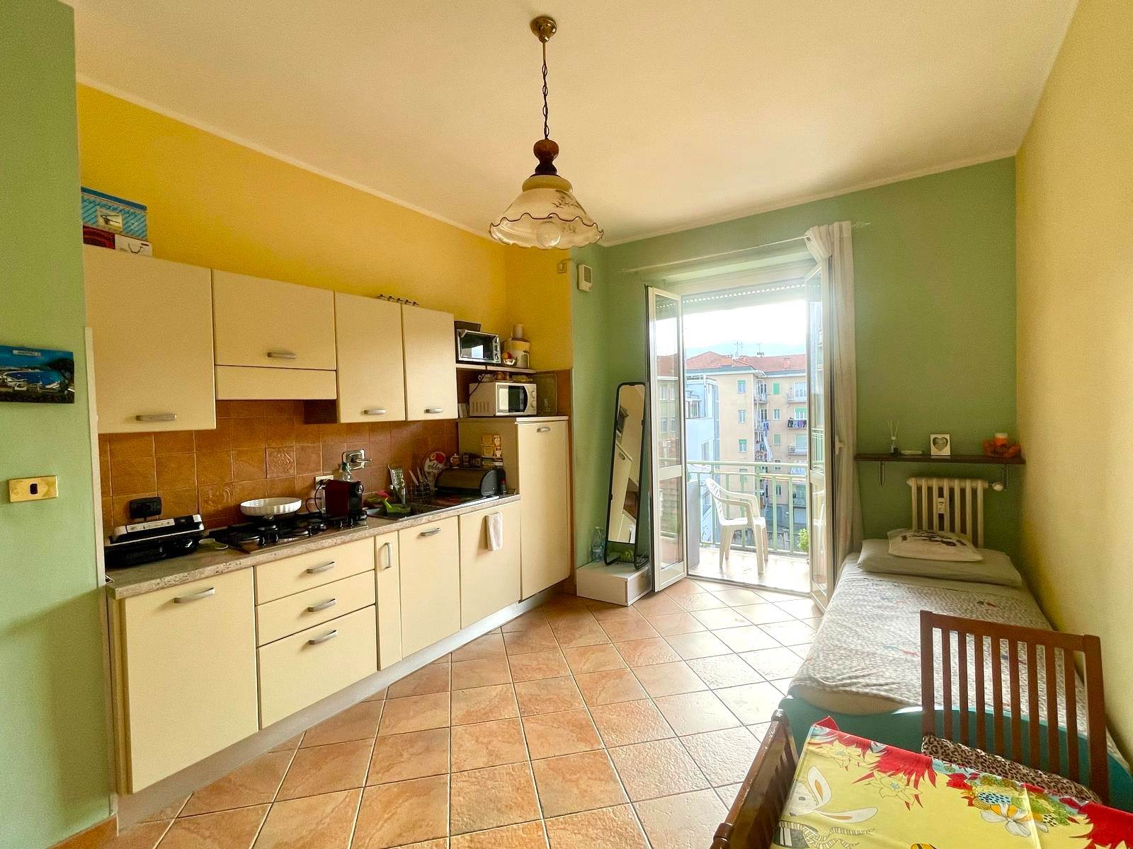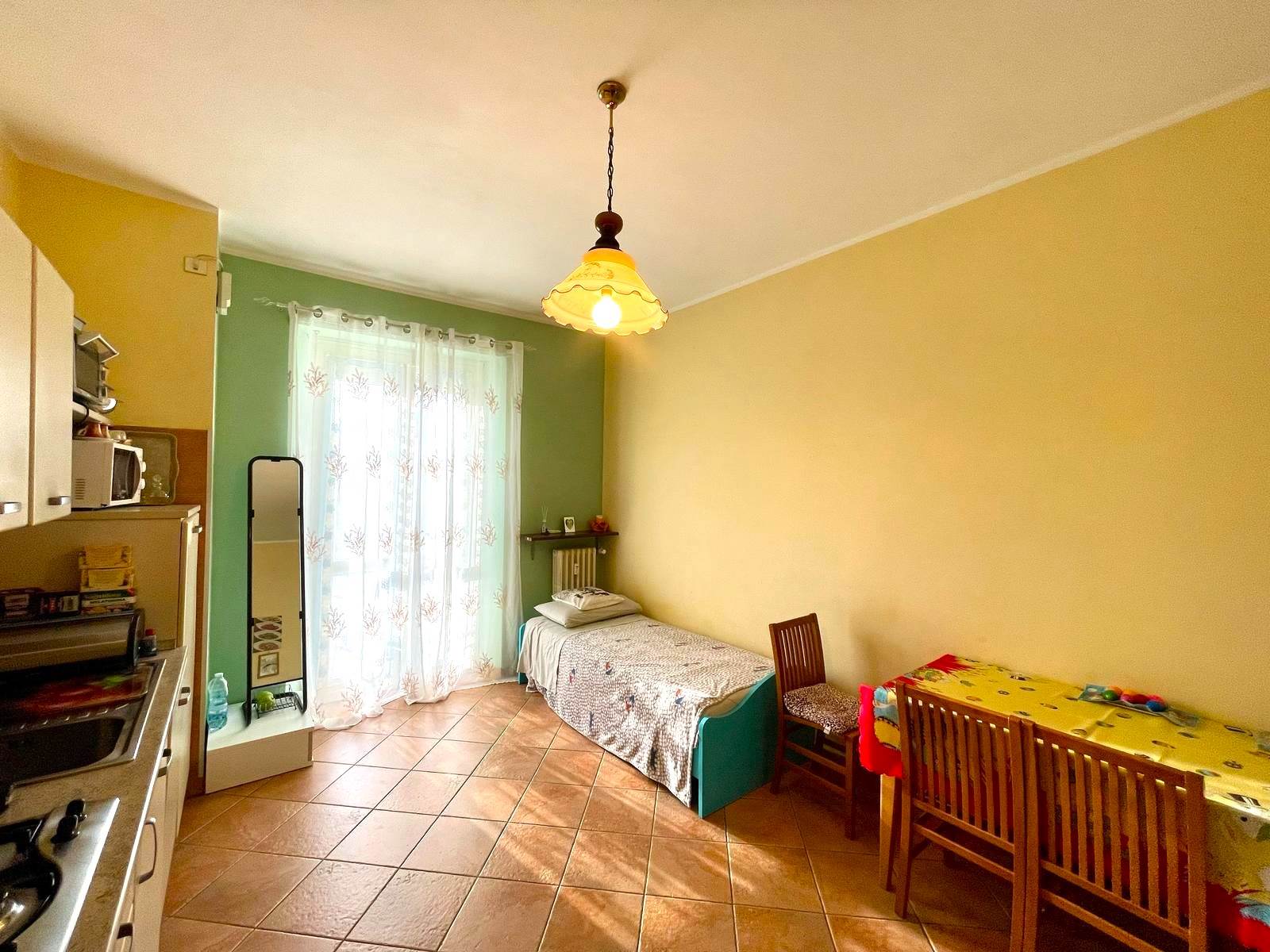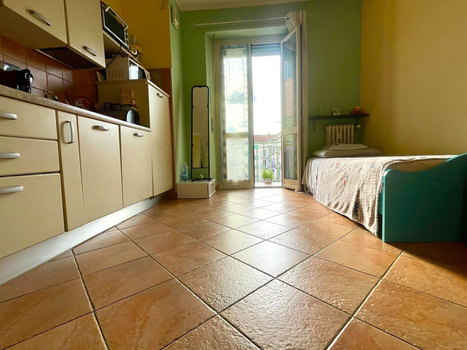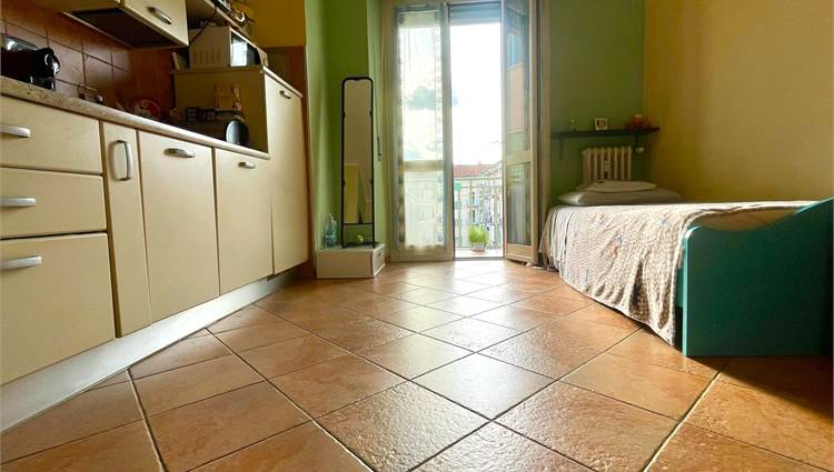 L'immobile è composto da ingresso, ampia cucina abitabile con balcone vista San Maurizio, camera da letto con pavimento in parquet, e balcone con vista sulla piazza, bagno finestrato con doccia.